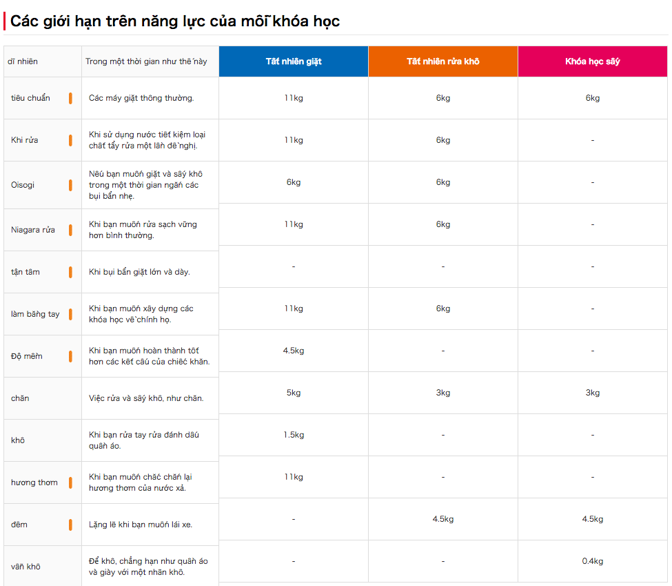 Chương trình giặt: |