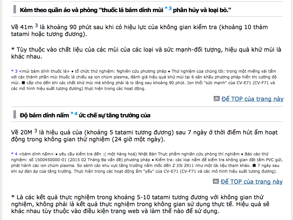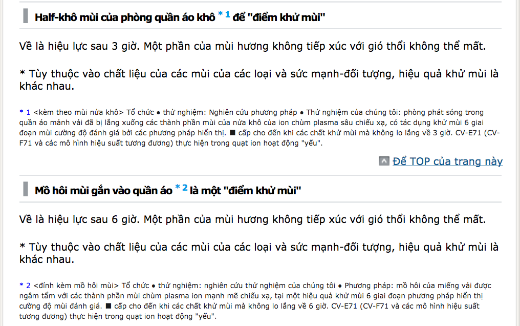 Diện tích Khử mùi tiêu chuẩn(Lưu ý 3) |