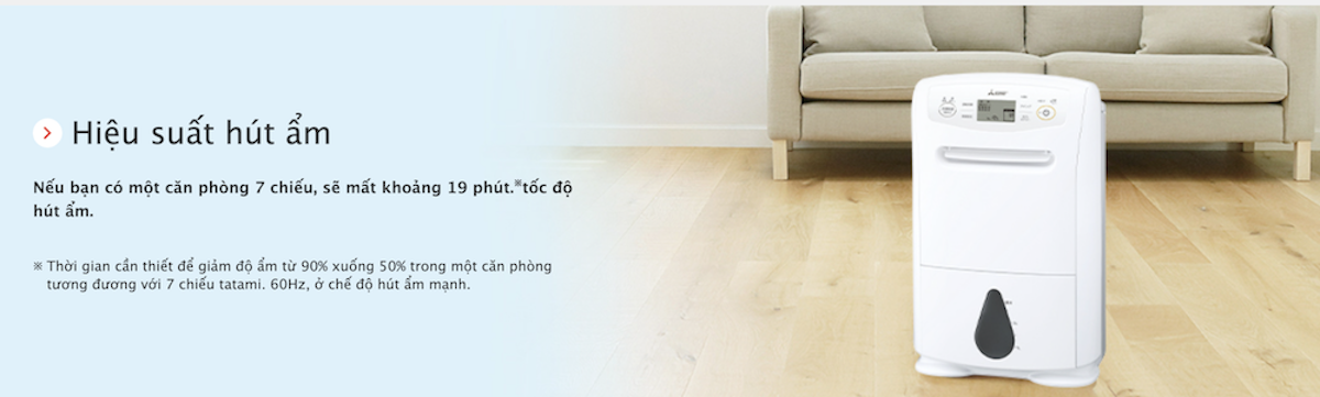 - Tốc độ hút ẩm và làm khô mạnh mẽ (sử dụng được cho phòng lớn): từ 50 tới 70m2