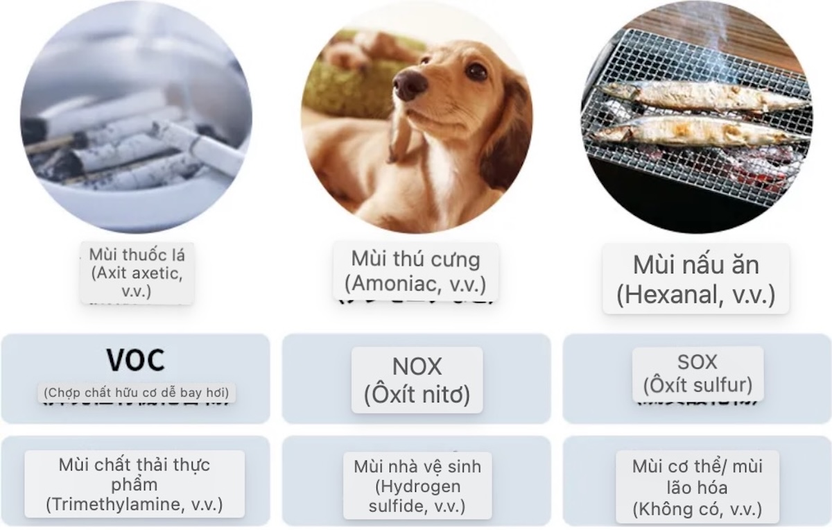 Bụi / Mùi / Độ ẩm / Nhiệt độ / Độ chiếu sáng |