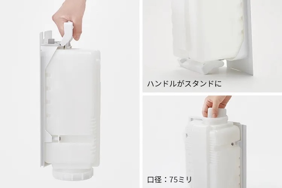 Bể cấp nước có tay cầmNó có tay cầm, dễ cầm và tự hỗ trợ, vì vậy dễ dàng cung cấp nước và làm sạch. Dễ dàng rửa với nắp miệng rộng. |