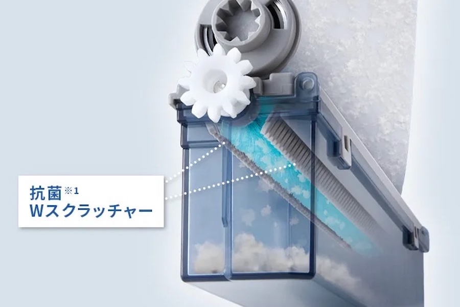 - Sử dụng bàn chải kháng khuẩn với thiết kế 2 thanh W-scratcher quét mạnh mẽ bụi bẩn tích tụ trên Pre-filter.