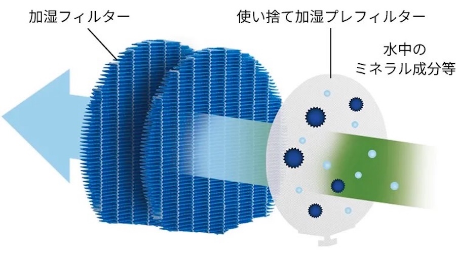 Nếu nó bị bẩn, chỉ cần tháo nó ra và vứt nó đi "bộ lọc trước độ ẩm dùng một lần"Giảm độ bám dính của bụi bẩn gây ra mùi hôi cho bộ lọc tạo độ ẩm. Bạn có thể sử dụng nó một cách sạch sẽ.