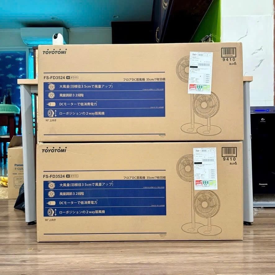 Lô hàng mới vừa về kho nhà em đây các bác ơi! Lần này em "rước" về thêm 20 con quạt cây Toyotomi FS-FD3524-W date 2024 – model nội địa Nhật đang làm mưa làm gió trên các group hàng Nhật. Lý do? Vì cánh quạt 35cm siêu rộng (lớn hơn hẳn các dòng thông thường), gió mát mạnh mẽ, êm ru mà lại tiết kiệm điện kinh khủng. Khách hàng dùng xong ai cũng "phê" luôn, bảo mát hơn hẳn so với quạt cánh 30cm hay 32cm trước đây.