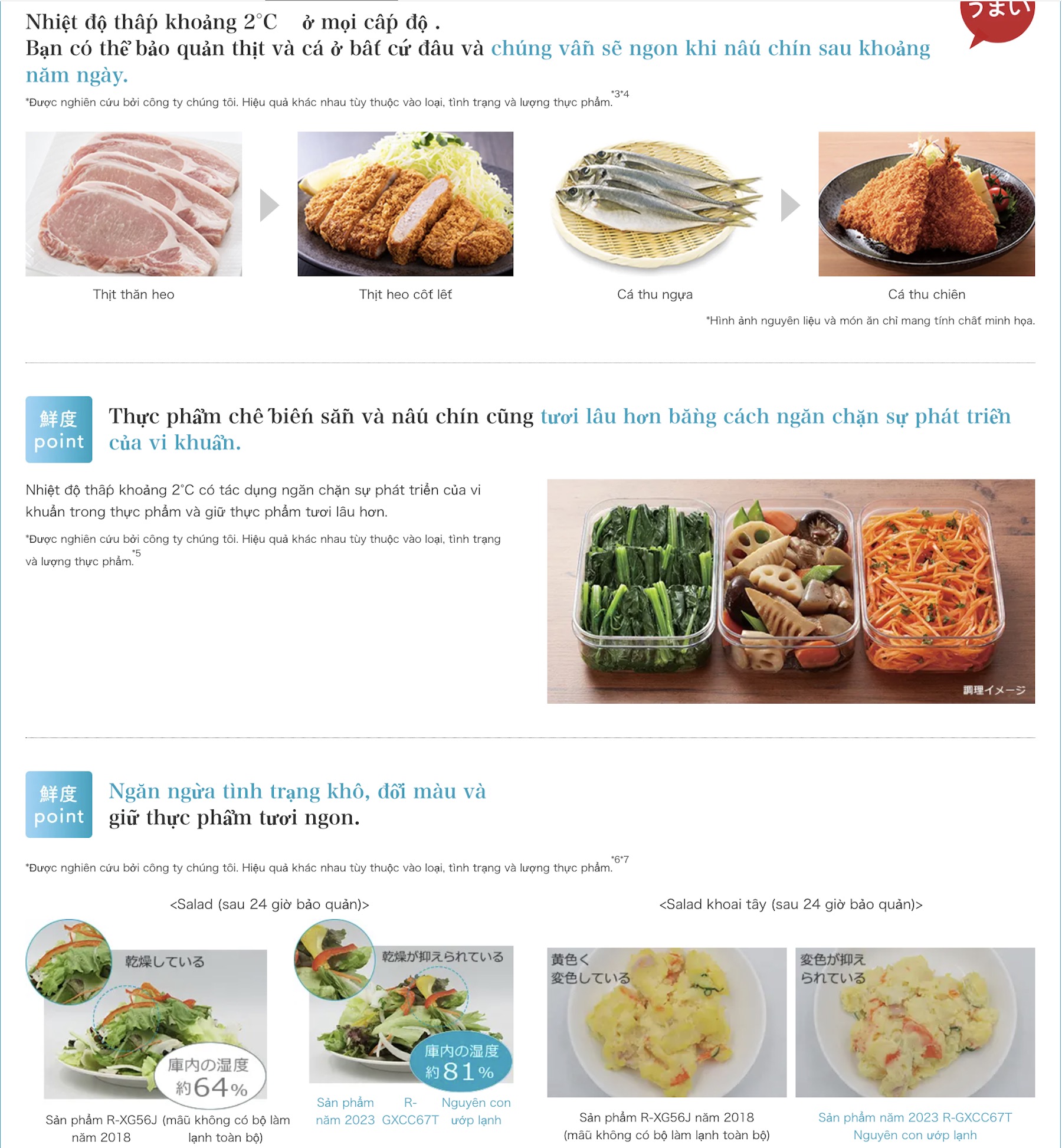 | Nhiệt độ ngăn mát (Marugoto Chilled) | Khoảng 2°C (toàn bộ ngăn mát) |