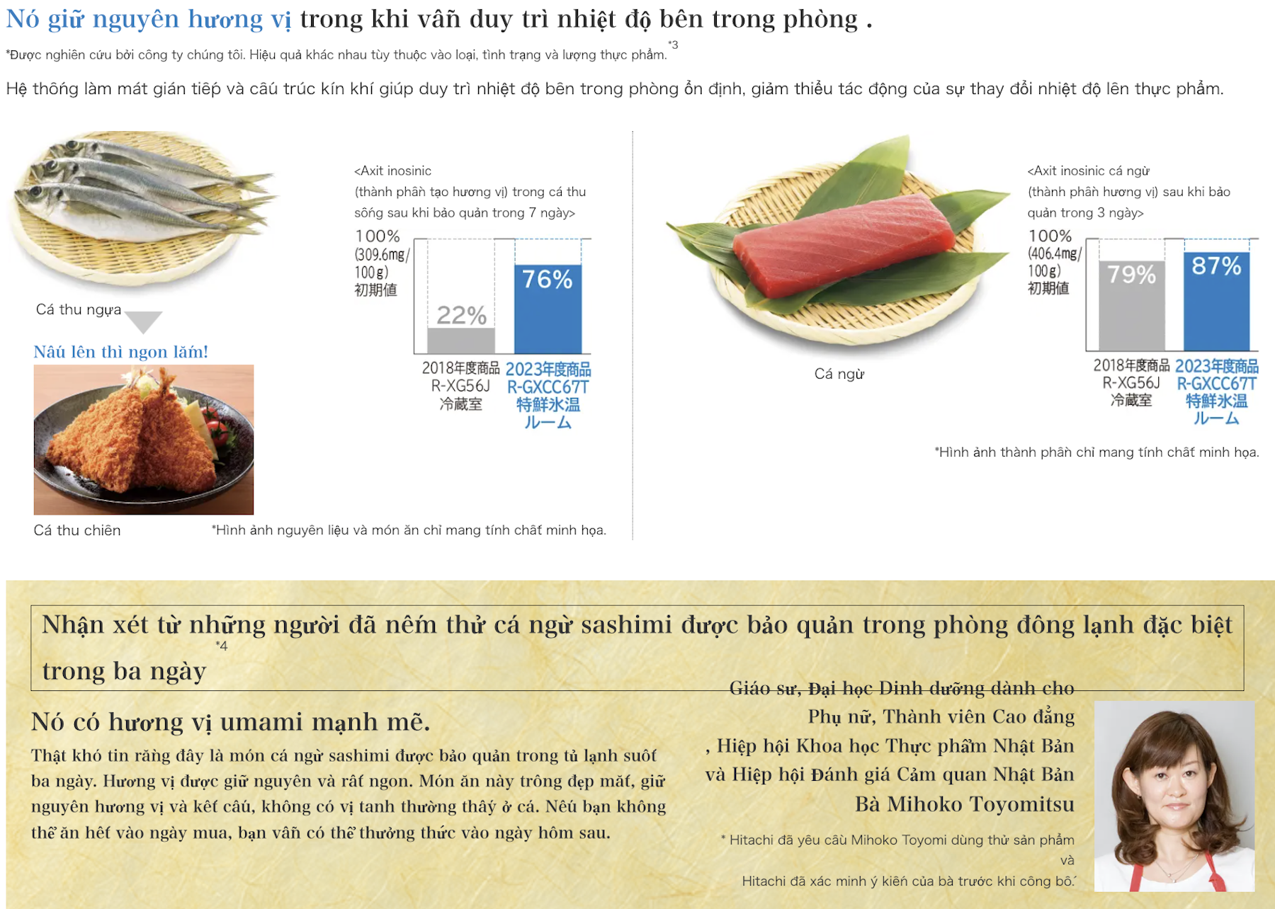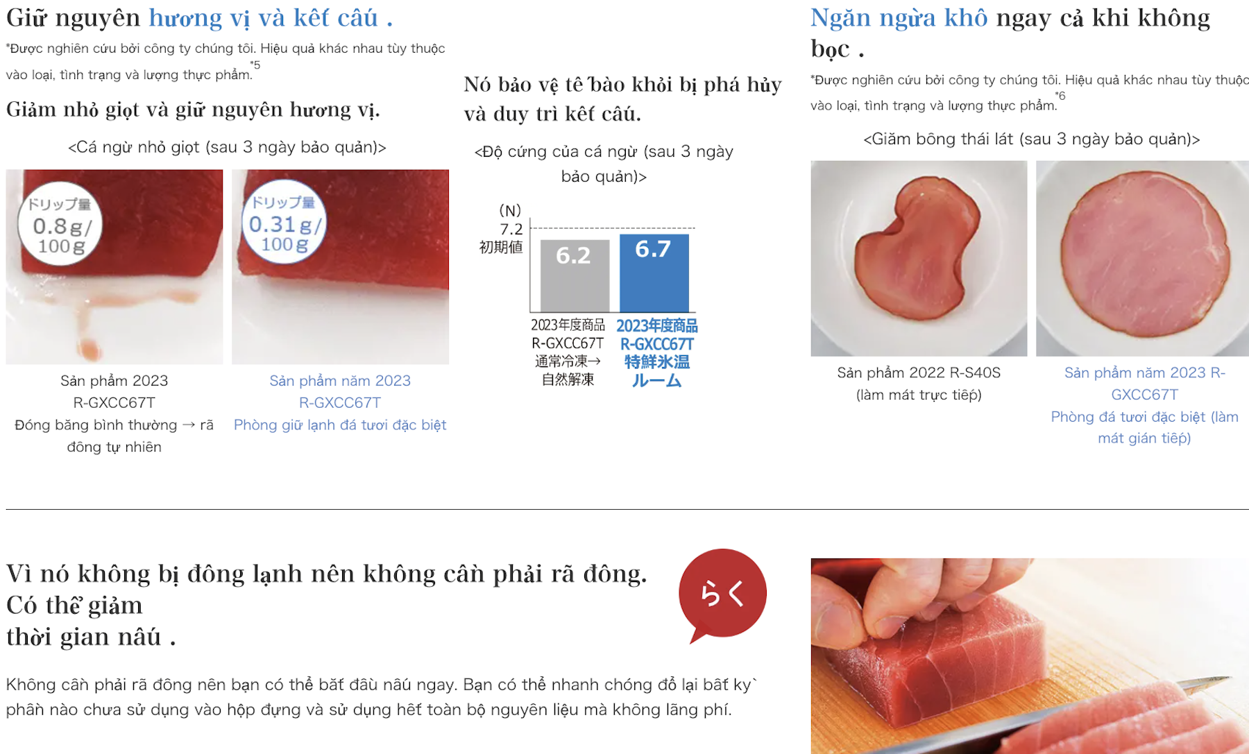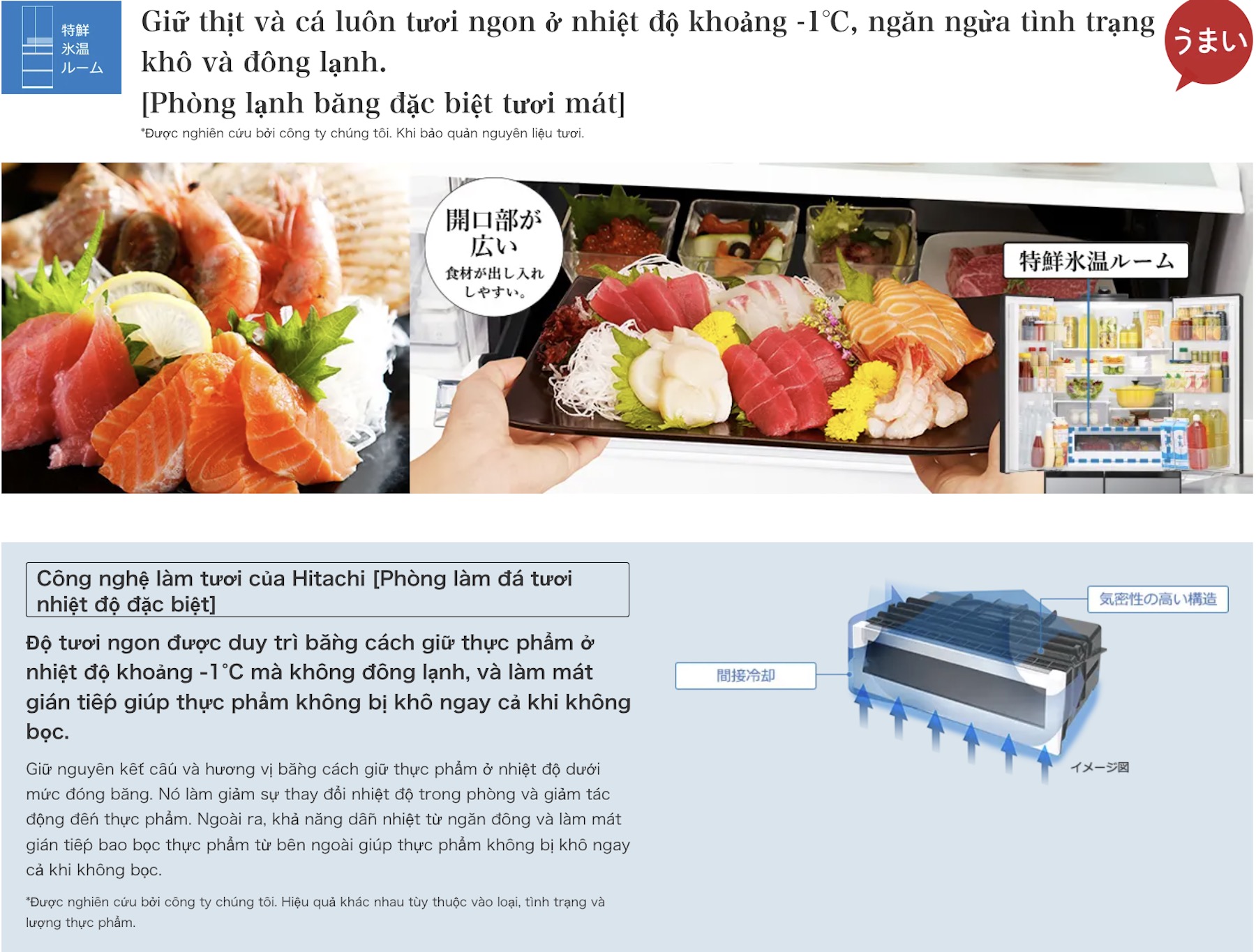 Được phát triển dựa trên nghiên cứu khoa học về sinh hóa thực phẩm, ngăn Tokusen Hyouon (特鮮氷温ルーム) duy trì nhiệt độ xấp xỉ -1°C – ngay tại ngưỡng dưới điểm đóng băng của nước nhưng cao hơn điểm đóng băng của dịch tế bào trong thịt.