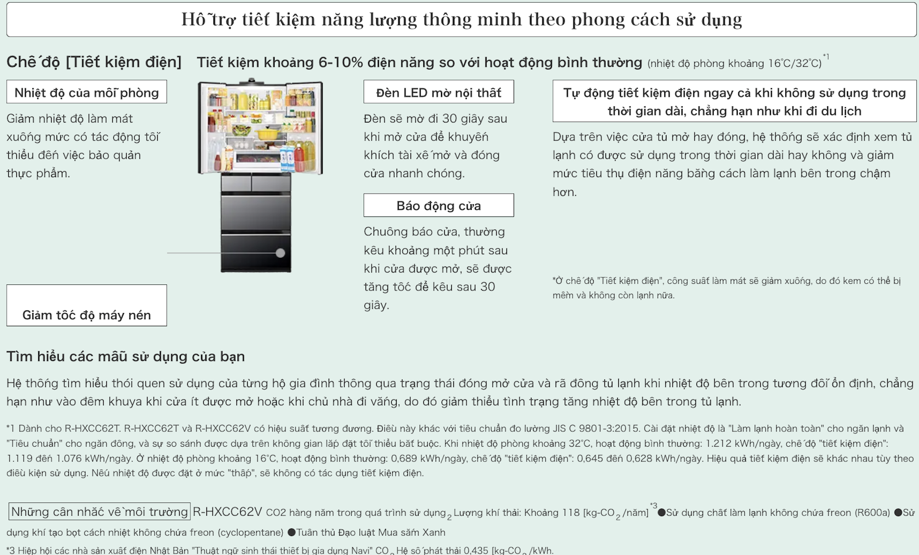 Ngăn rau củ 118 lít của R-HXCC62V ứng dụng công nghệ Shinsen Sleep (新鮮スリープ野菜室), hoạt động theo cơ chế sinh học tinh tế:
